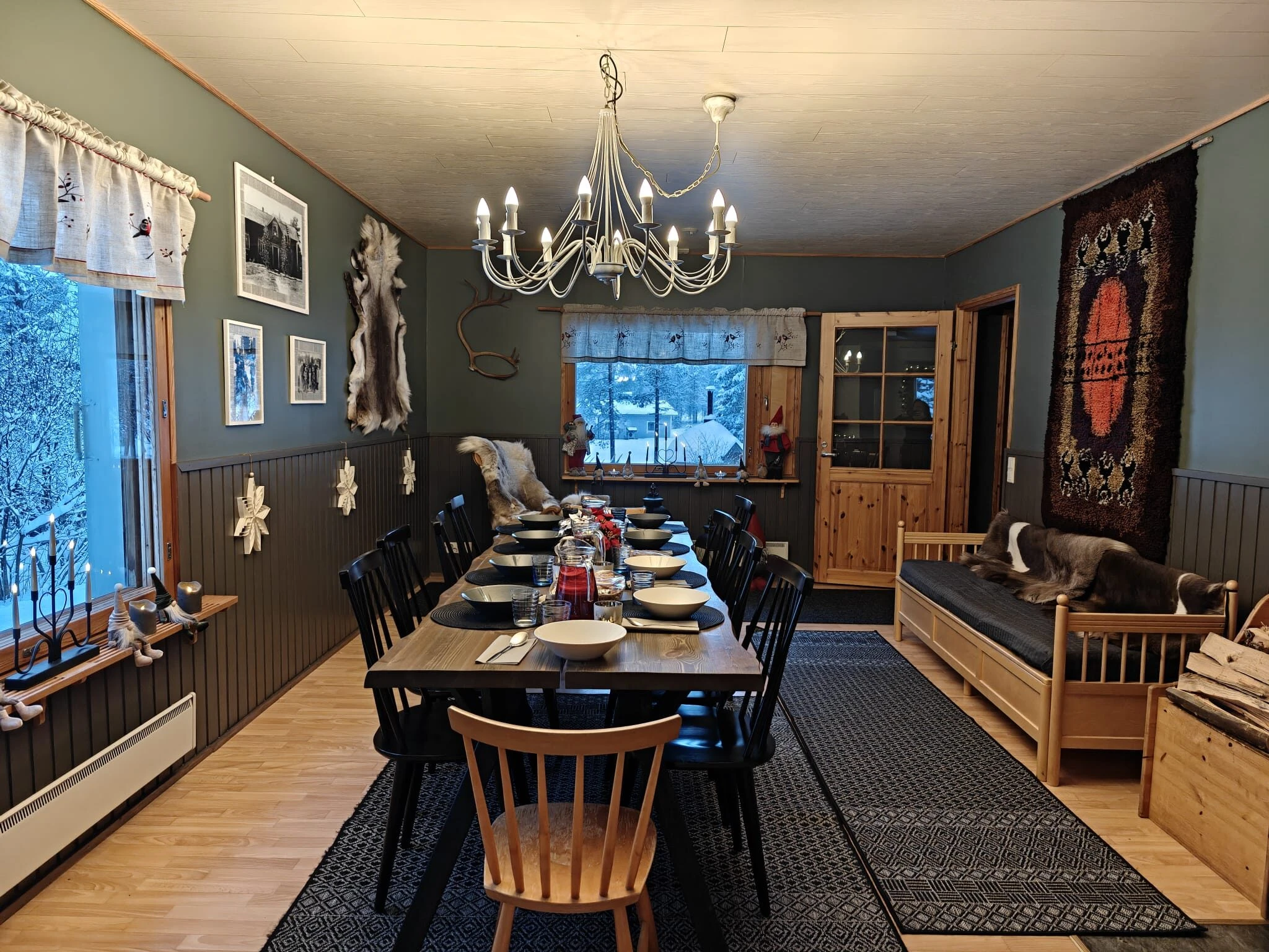 The transportation leaves from Rovaniemi at 10.00 o´clock/10 am. The drive to our home is about one hour. After we arrive, we will check that everyone´s clothing is warm enough as we don´t want anyone to get cold. We kindly recommend that you dress warmly enough, but don´t worry, we have extra clothing for you if you need it!